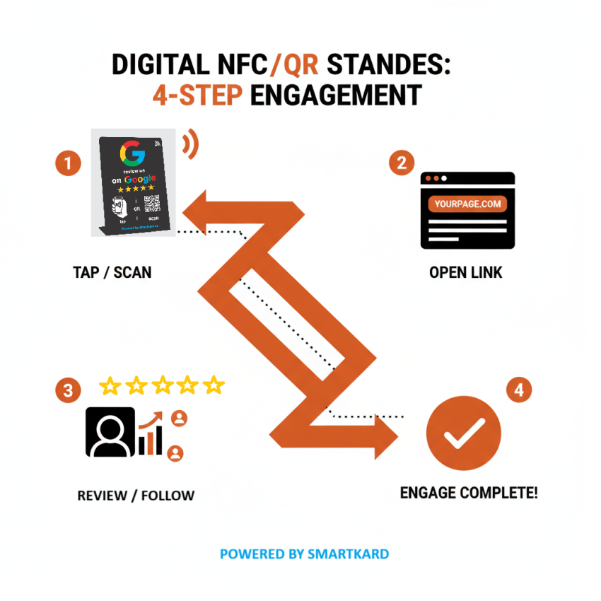 TAP or SCAN → Google Review Page Pops Up → Write Review